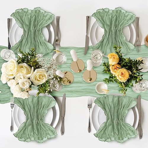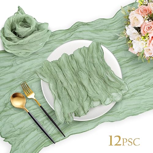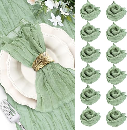Vusddy Serviette De Table,Serviette De Table en Tissu,carré Gaze De Coton,50 * 50 Cm,Chemin De Table Vert Sauge pour Mariage,fête,dîner, Maison Usage Quotidien(12PCS)