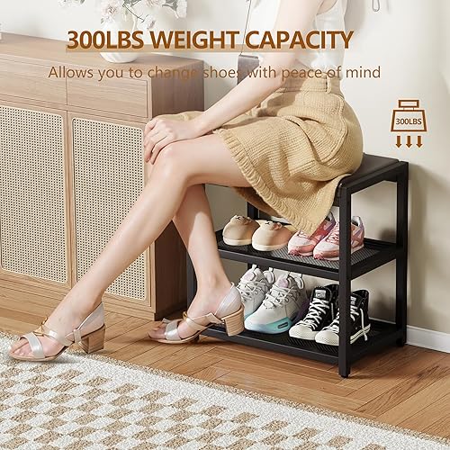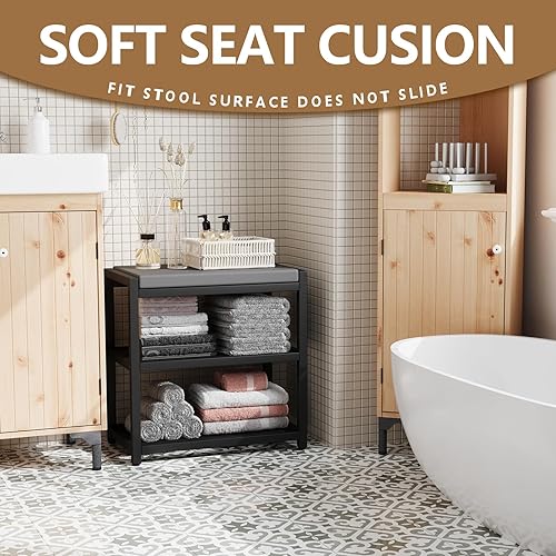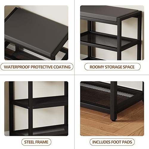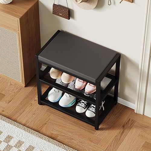 ZHOOGE Banc à chaussures - Banc de rangement - Banc d'entrée - Étagère à chaussures avec coussin de siège, organiseur de chaussures stable pour entrée, salon, banc pouvant supporter jusqu'à 136 kg