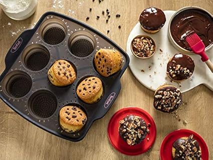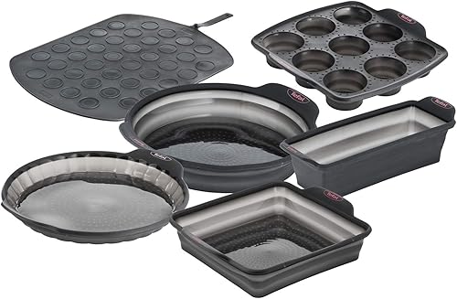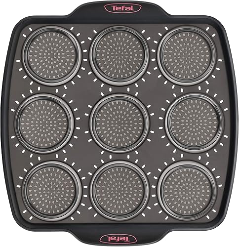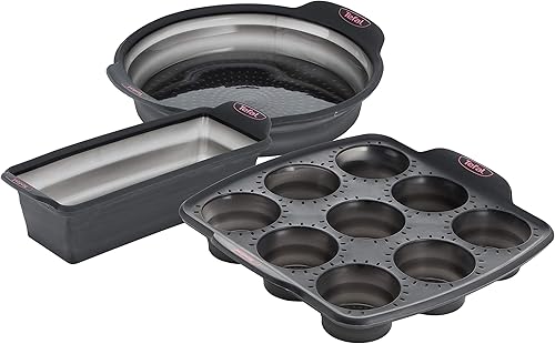 Tefal Crispybake Set 3 Manqué Cake 24 cm + 9 Muffins Rétractable 30x29cm Moule à Gâteau Silicone 100 Pour cent Platinium Haute Résistance YY4221FA, Noir