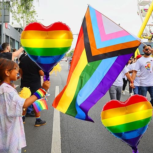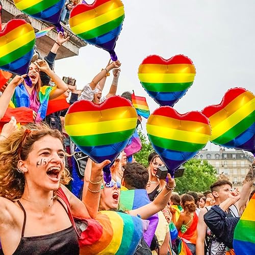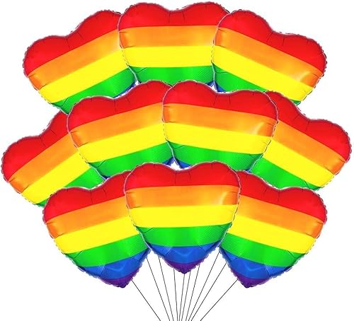 Lot de 10 ballons en aluminium Gay Pride - 45,7 cm - Arc-en-ciel - Décoration LGBT Pride - Pour anniversaire, fête prénatale, mariage