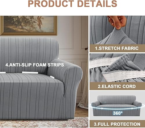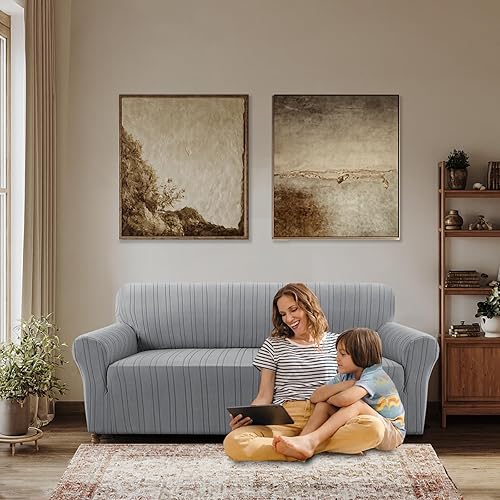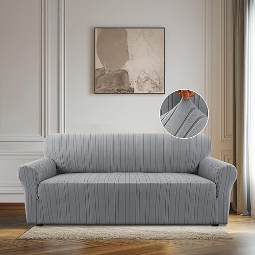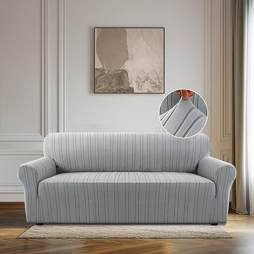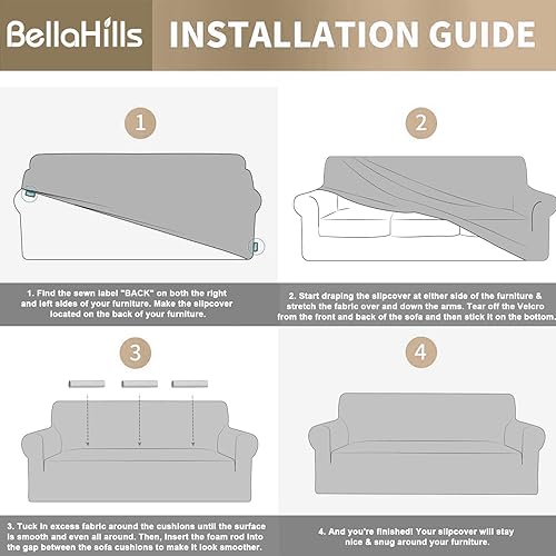 BellaHills Housse de Canapé 1 Place Extensible,Protection Anti-Taches et Anti-Poils pour Chien/Chat, Housse de Sofa Élasticisée Antidérapante,Gris Clair