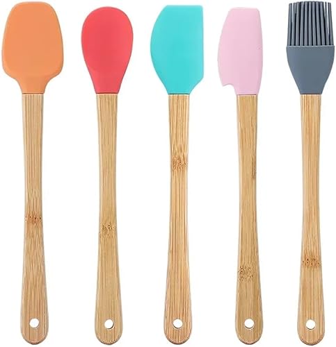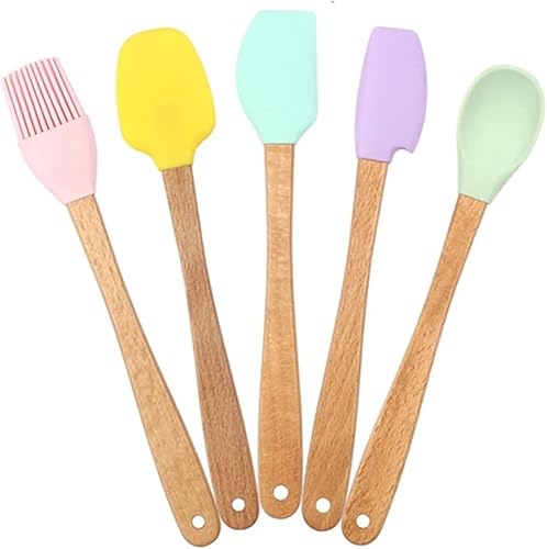 Spatule Cuisine Silicone Mini spatule à gâteau et crème en Silicone, manche en bois, pâtisserie, mélangeur de pain, grattoir de cuisine, brosse à huile de cuisson antiadhésive, 5 pièces(Color 2-5pcs)