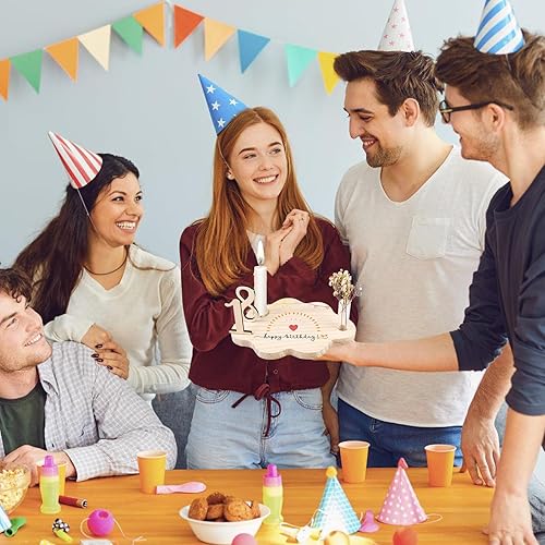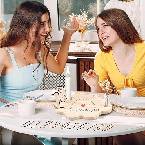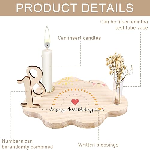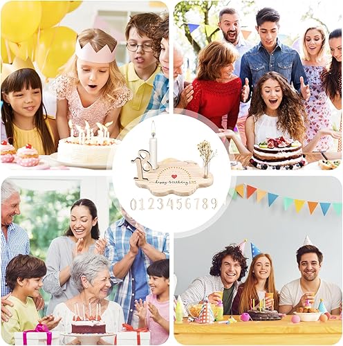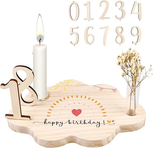 Assiette d'anniversaire en bois personnalisée avec bougeoir - Vase - Chiffres annuels de 0 à 9 - Livre d'or - Décoration d'anniversaire en bois pour garçons, filles, adultes