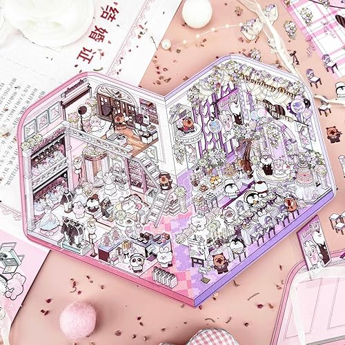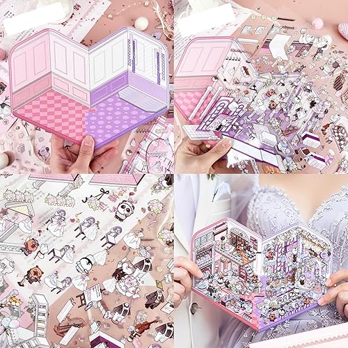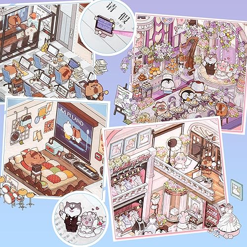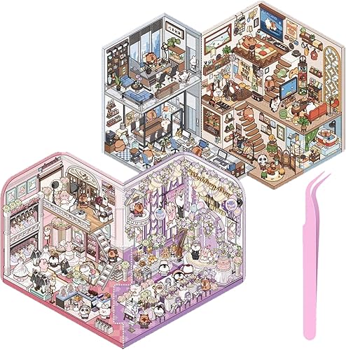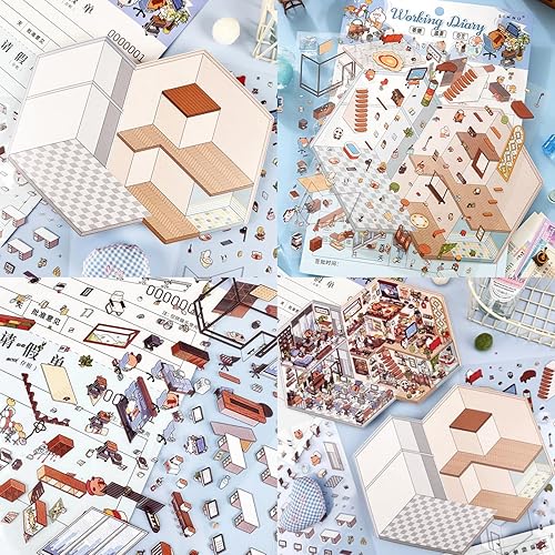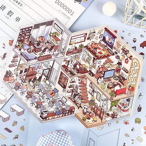 HTTDSLF Autocollants de Scène Autocollant 3D, House Stickers Cartoon Miniature Scene 3D Stickers, Convient aux Adultes et aux Enfants pour Soulager le Stress et Passer le Temps, avec une Pince à Pince