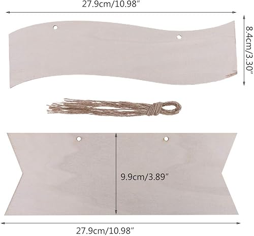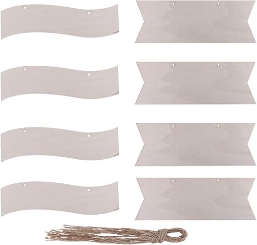 Lot de 8 panneaux vierges en bois de forme ondulée à suspendre avec corde pour scrapbooking