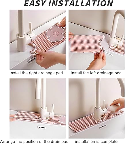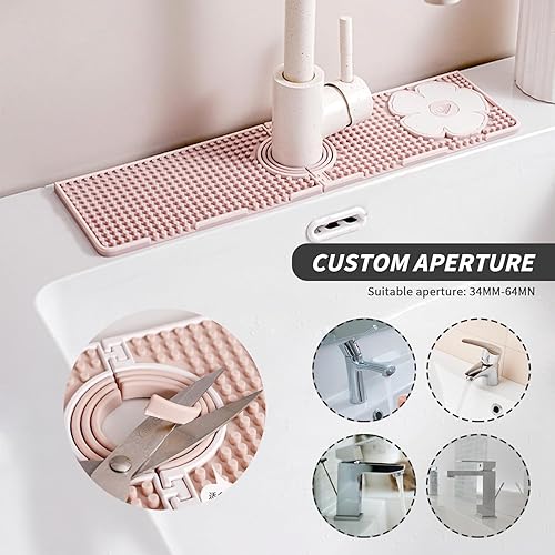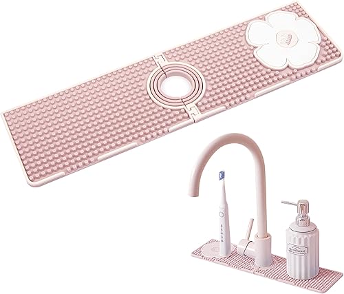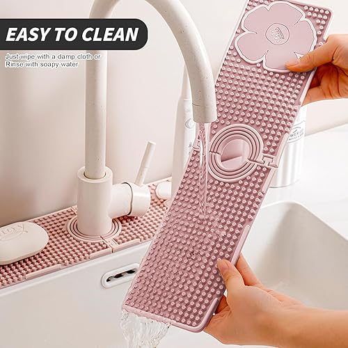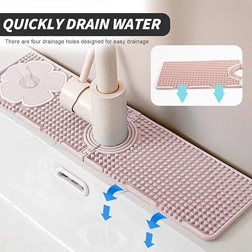 Tapis Egouttoir, Tapis de Robinet en Silicone, Tapis Evier Cuisine pour Eclaboussure, Drainage, Séchage et Protection évier, Tapis Vaisselle Rose, Tapis Egouttoir Vaisselle Absorbant, 38 * 10 * 0.8cm