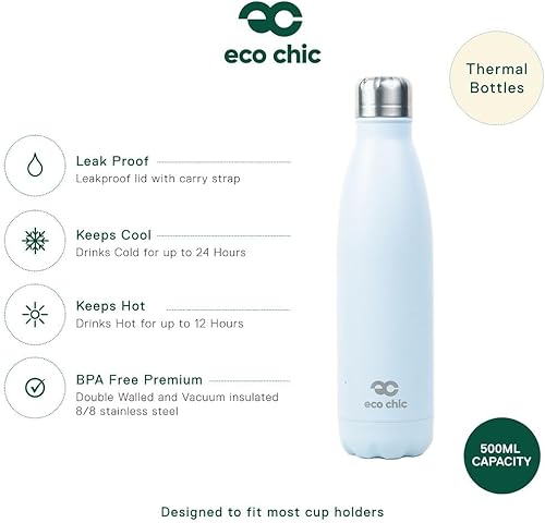 Eco Chic Bouteille isotherme réutilisable en acier inoxydable étanche (bourdons gris)