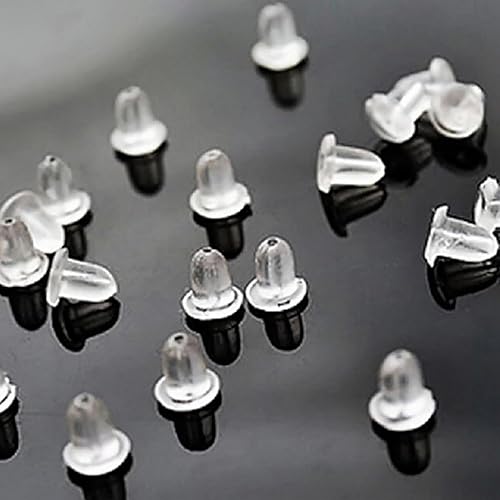 200 FERMOIRS EMBOUTS CAOUTCHOUC PLASTIQUE TRANSPARENT POUR BOUCLES D'OREILLES 4 x 4 mm - POUSSOIR