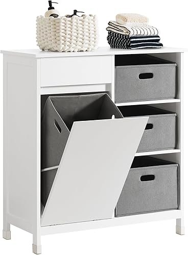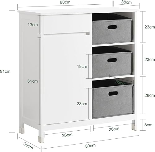 SoBuy Placard Meuble Bas de Salle de Bain avec 1 Tiroir, 1 Panier à Linge et 3 Corbeille, Armoire Toilette avec Sacs à Linge, Armoire ,Coffre à Linge, 80x91x38cm, BZR77-W