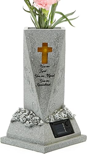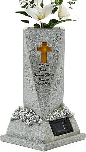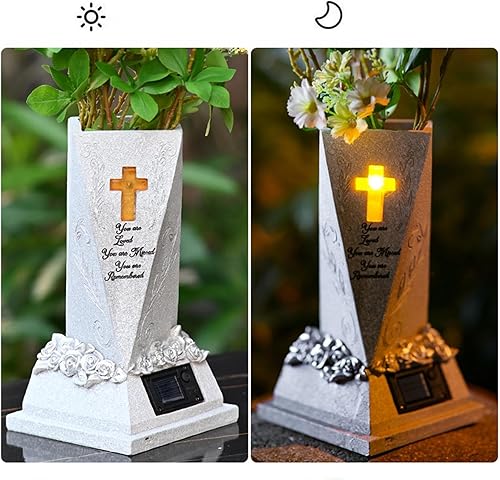 Vase funéraire pour cimetière, vase à fleurs solaire, support de fleurs de cimetière, vase décoratif pour tombe, lampe solaire pour jardin, cimetière, pelouse, cour