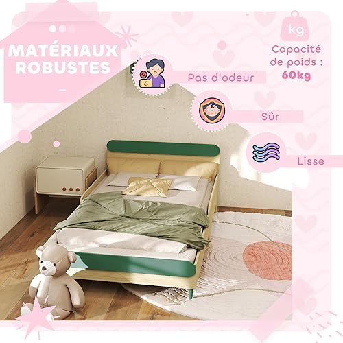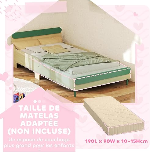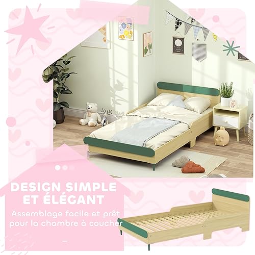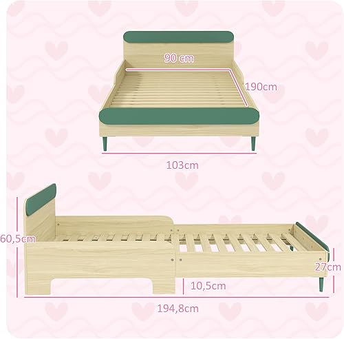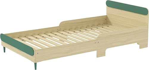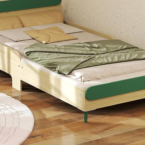 AIYAPLAY Lit Enfant, lit au Sol Enfant 90x190 cm avec barrière de sécurité, sommier à Lattes Inclus, pour Enfants 3-10 Ans, Vert