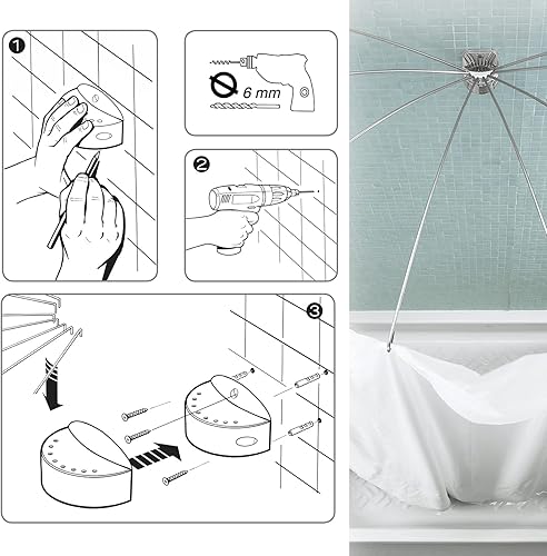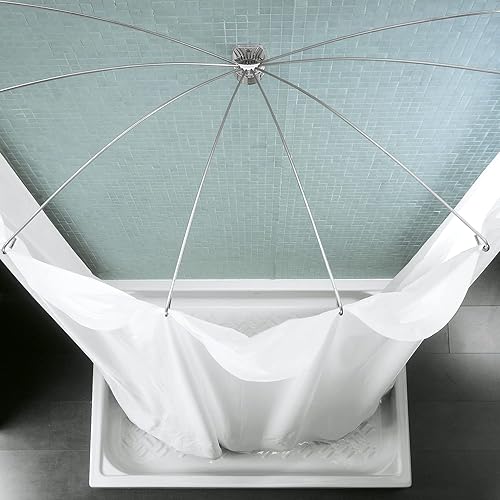 Gedy Pliage 180° sans rideau, dimensions et poids du produit : 38 x 124 x 62 cm et 1,452 kg, cadre rideau de douche en tissu, finition chromée, design R&S, 2 ans de garantie