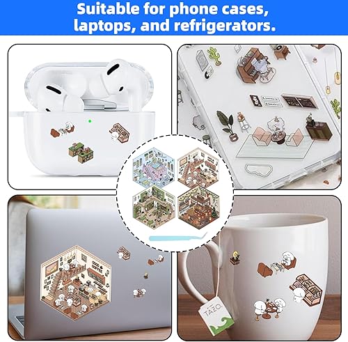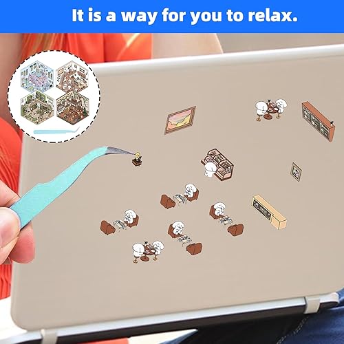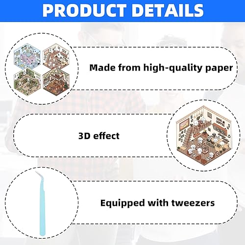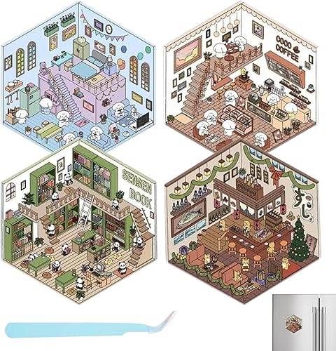 DONOONIS Lot de 4 Autocollants,DIY 3D Autocollants Maison Set,3D Stickers Scene,Fabrique à Stickers 3D,Type A Supermarché Café Maison Librairie Restaurant + 1 Pinces Scène Créative Amusement Empilage