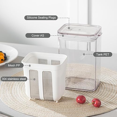 Palmcee Passoire à Yaourt De 1100 Ml, étanche Et Réutilisable, Gadget De Cuisine, Passoire à Fromage Sans Pa Avec Un Sac En Maille Fine, Yaourtières Pour Faire Du Yaourt Grec épais Et Du Lait De Soja