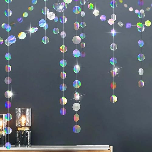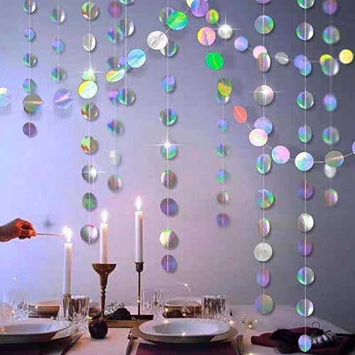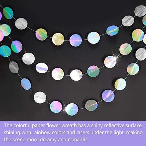 Lot de 4 guirlandes rondes en papier à paillettes multicolores - Décoration de fête - Guirlande ronde iridescente suspendue - Double face - Pour fiançailles, anniversaire, mariage, Saint-Valentin
