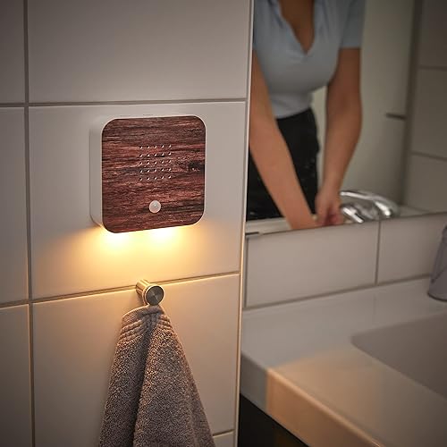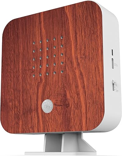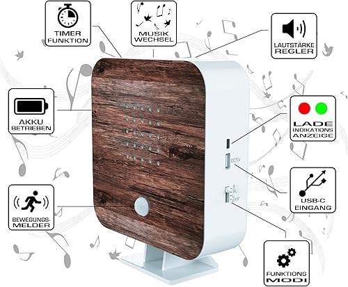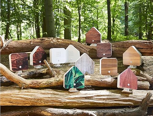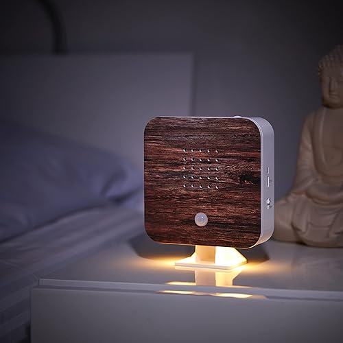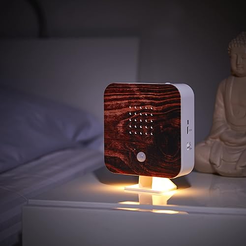 Northpoint Boîte à bruit naturel pour oiseaux, chant, chant, boîte à détecteur de mouvement, bruit d'oiseaux, lumière rechargeable, avec support mural, bois de noyer, angulaire
