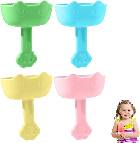 Bavooty Porte-Glace Anti-Gouttes pour Enfants,Support À Glace en Silicone,Porte-Bâtons de Glace pour Enfants,Forme de Chat Mignon,Lavable et Réutilisable Adultes,Garçons et Filles,4 Couleurs