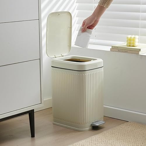 Poubelle à Pédale Rectangulaire Étroite en Plastique 10L AURA Blanc