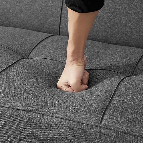 VASAGLE Futon Sofa Bed, Convertible Sofa Couch Sleeper, Cotton-Linen Upholstery and Wooden Legs, Gray LCS701G01