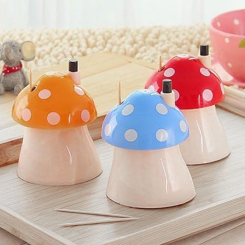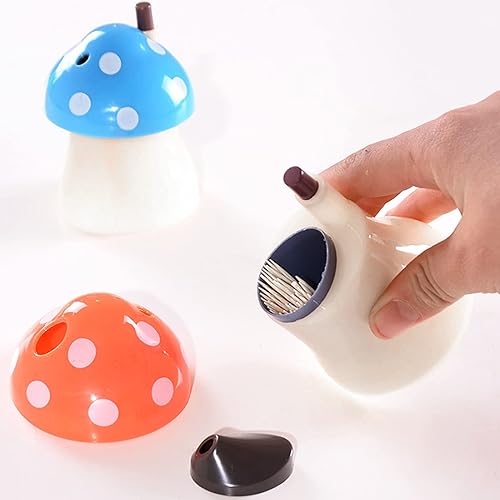 Roadoor Joli porte-cure-dents automatique de grande capacité en forme de champignon, distributeur de cure-dents anti-poussière, 4 couleurs, jolie boîte créative rouge