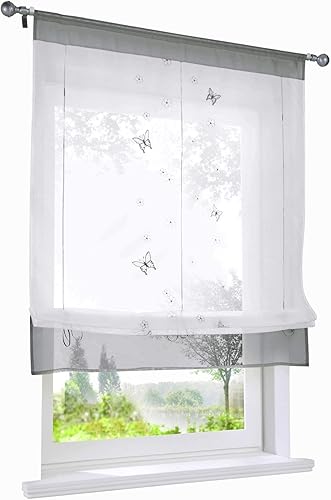 BAILEY JO 1Pc Store Romain Photique Passe Tringle avec Broderie Papillons et Fleurs Décoration de Fenêtre Chambre/Salle de Bain/Balcon (LxH/80x120cm, Gris)