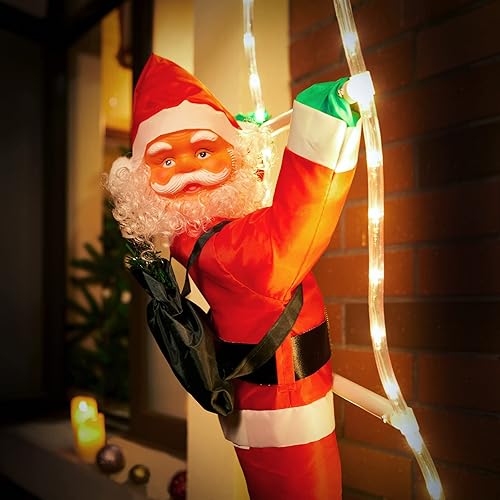 MONZANA® Père Noël échelle extérieur grimpeur lumineux LED XL 90cm escalade minuteur 8 fonctions éclairages télécommande décoration personnage noël