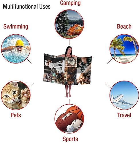 UOKIIYUA Serviette Photo personnalisée, Serviette de Plage personnalisée à séchage Rapide avec Votre Image et Texte, Serviette de Voyage en Microfibre Douce 70x140cm