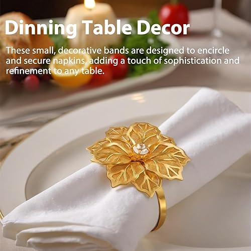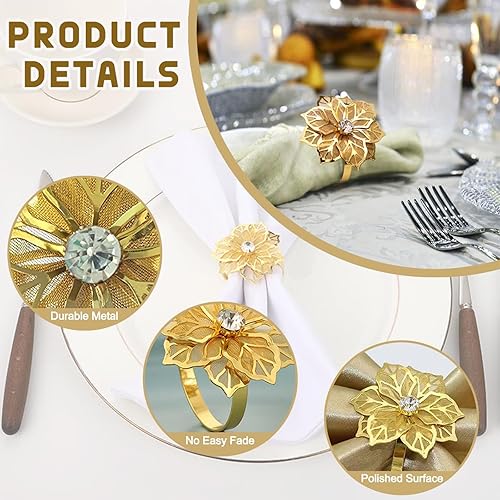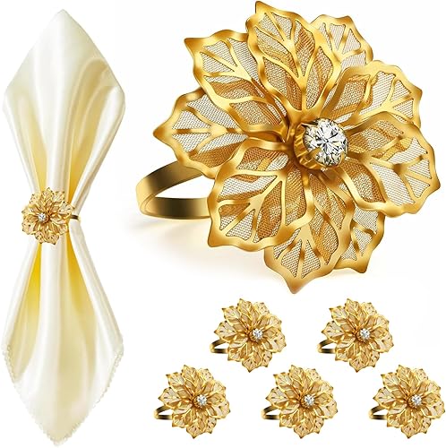 BelleVive Lot de 6 ronds de serviette avec fleurs creusées, porte-serviettes pour fête de mariage, dîner de Noël, banquet de vacances, boucles de serviette délicates, décorations, cadeaux d'invités