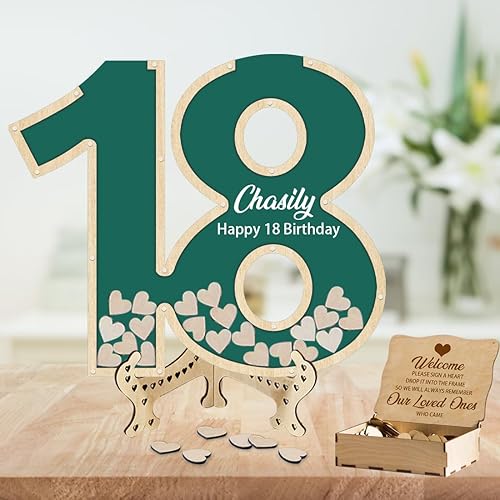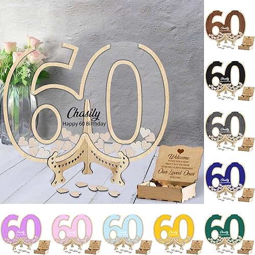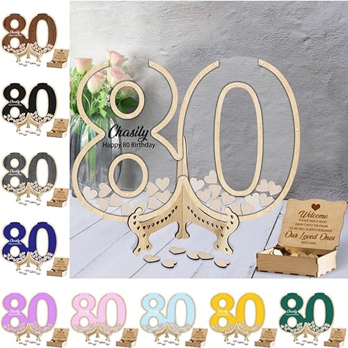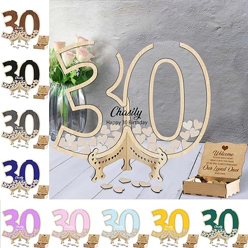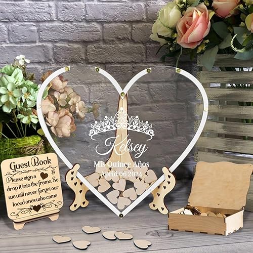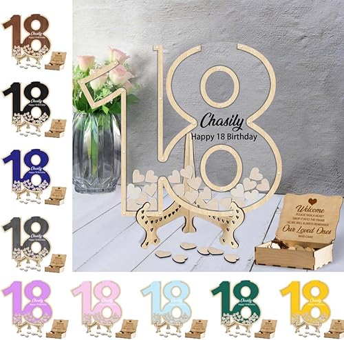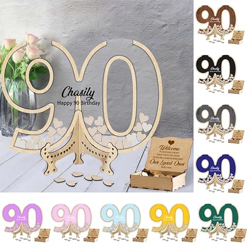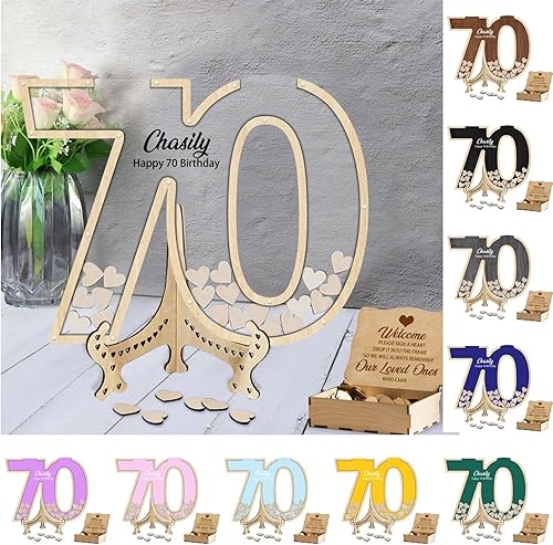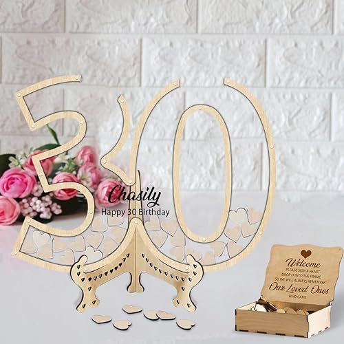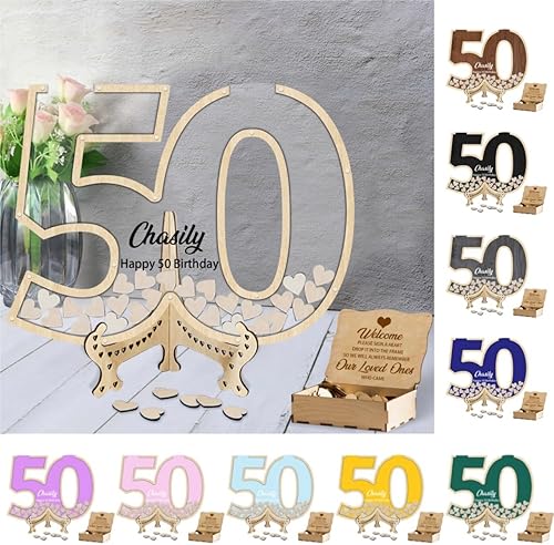 Certykllp Livre d'or personnalisé pour 50e Anniversaire - Décorations de fête - Idées dorées - Numéro 50 - Cadre avec 30 à 100 cœurs en Bois