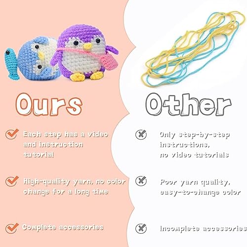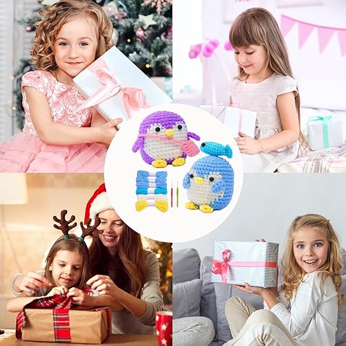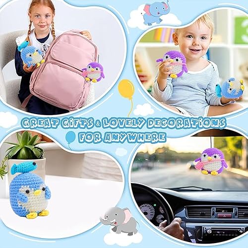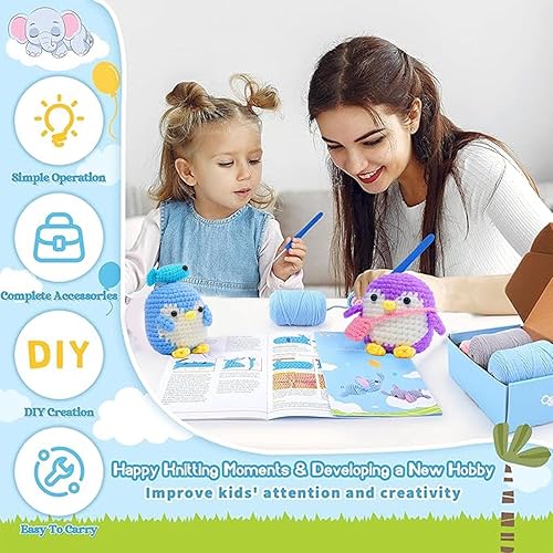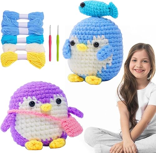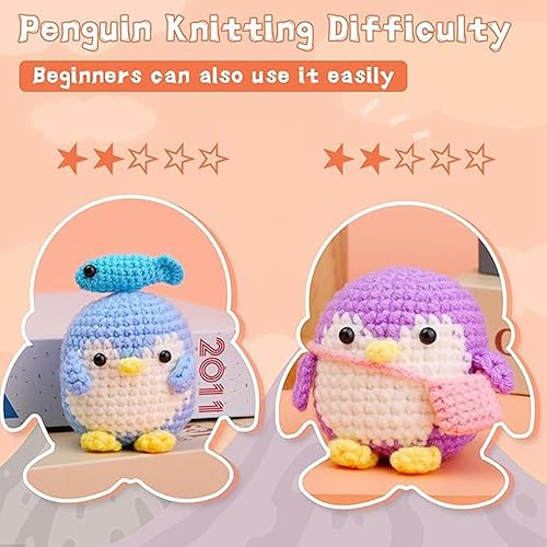 Jiimhte Kit animal au crochet pingouin, kit de crochet pour débutants | Kit de crochet de pingouin en peluche animal,Fournitures artisanales au Crochet pingouin, Kit de tricot pingouin pour adultes et