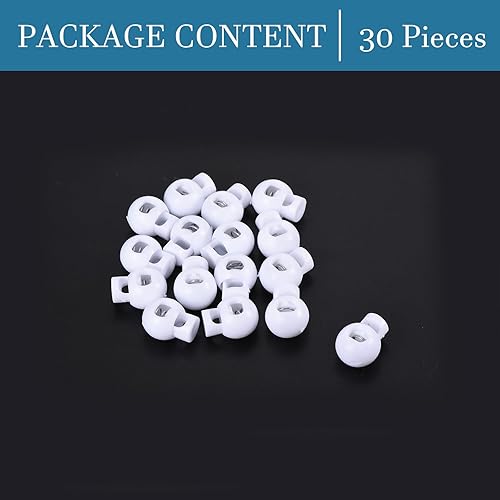 QUARKZMAN 30 Pièces de Bloqueurs de Cordon en Plastique à Tête Ronde à Ressort, de Taille 6 mm x 5 mm, pour Imperméables, Manteaux et Sacs à Dos, [Blanc Transparent]