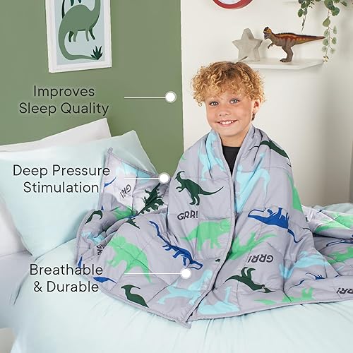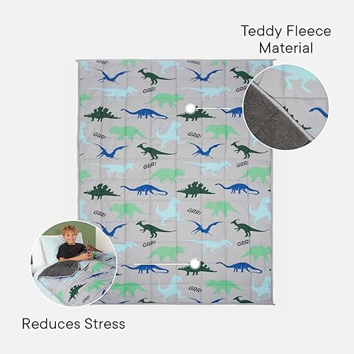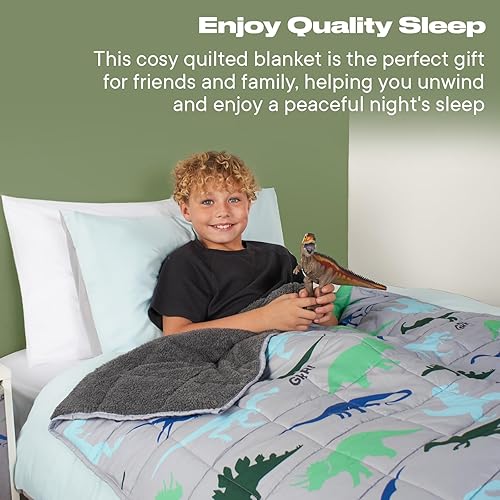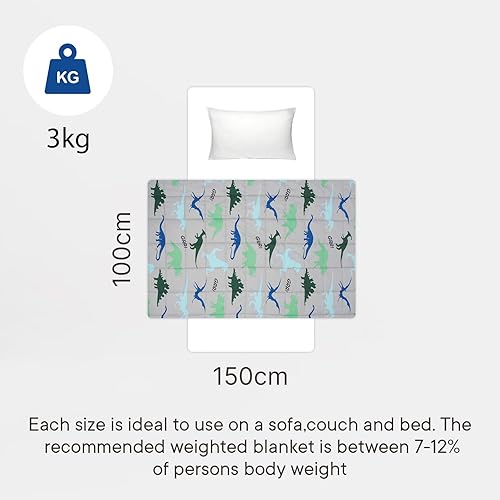 OHS Couverture lestée Polaire Teddy 3kg 100 x 150 cm Gris Dinosaure