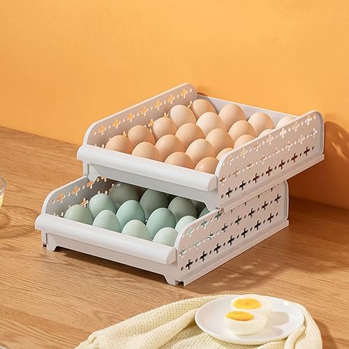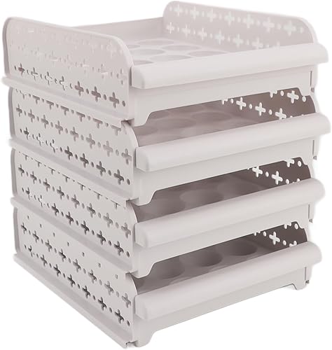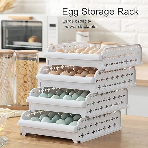 Tyenaza Récipient à Oeufs De Réfrigérateur, 4 Pièces Récipient à Oeufs pour Réfrigérateur PP Empilable Antichoc Tiroir à Oeufs Organisateur Boîte De Rangement pour la Maison(4 Layer)