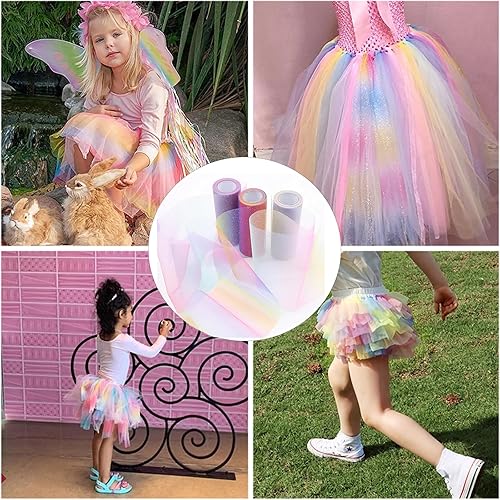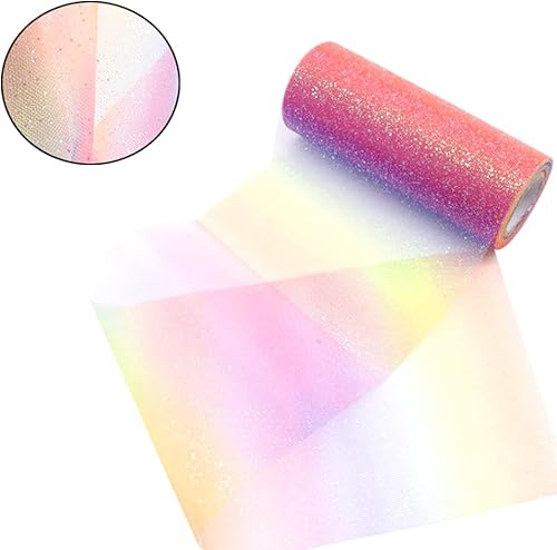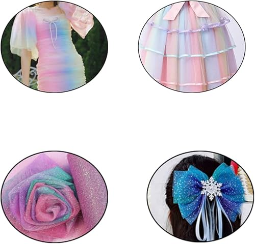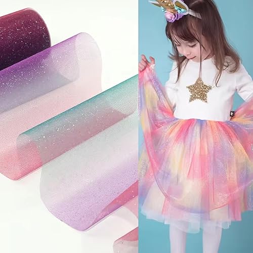 Belvanr Rouleau de Tulle Pailleté Arc-en-Ciel - 3 Rouleaux Rainbow Gradient, Bobine de Tissu, 15CM x 9M