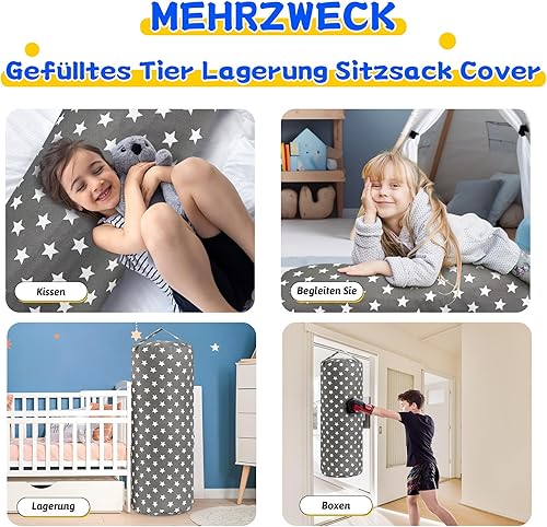 LAHAQIQI Housse de pouf de rangement pour animaux en peluche pour enfants – Sacs de rangement pour jouets en peluche pour garçons et filles – Fermeture éclair sur toute la longueur – Décoration de
