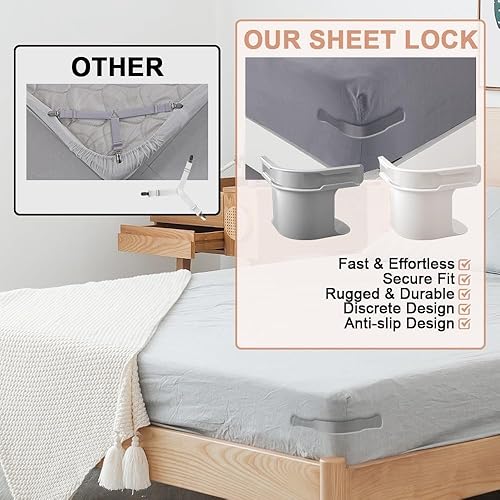 Lot de 4 Supports de Drap de lit avec Bandes de Fermeture, Robustes - Coin Ouvert - Sangles de Drap de lit (Gris)