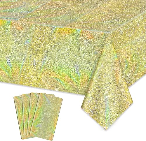 Lot de 4 nappes dorées à paillettes, jaunes, pour anniversaire, fête, mariage, 130 x 220 cm
