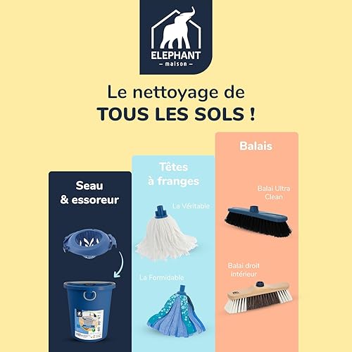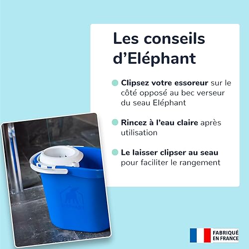 ELEPHANT Maison - Essoreur Classic - S'Utilise avec Serpillère Têtes À Franges - Peu Encombrant - Plastique Recyclé - Certifié Origine France Garantie - Bleu