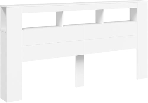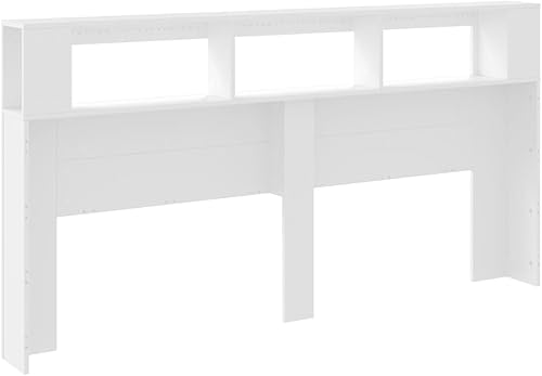 HOMTAKIE Tête de Lit à LED, Tête de Cadre de Lit, Accessoire de Lit Double, Meuble de Chambre à Coucher Maison Intérieur, Blanc 200x18,5x103,5cm