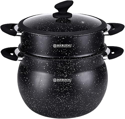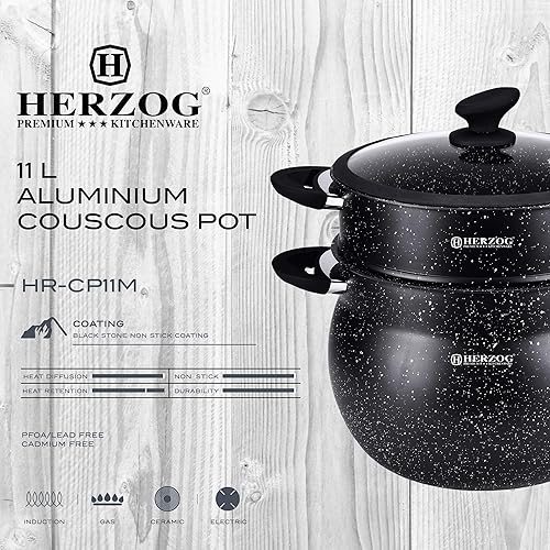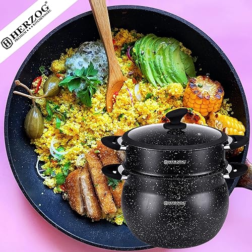 Herzog couscoussier Façon Pierre Tous Feux Dont Induction sans PFOA Haute Qualité Revêtement en Greblon C3+ de Technologie Allemande… (11 LITRES)