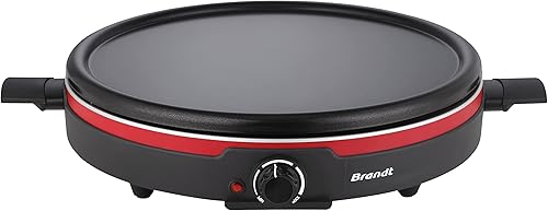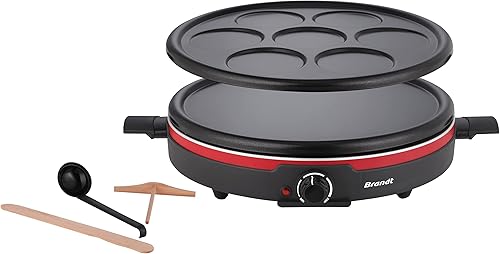 Brandt CR1350 - Crêpière - Jusqu'à 6 personnes - Thermostat réglable - Plaque amovible - Accessoires : 1 Spatule, 1 râteau, 1 louche doseuse - Noir