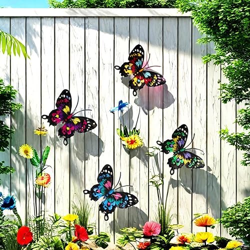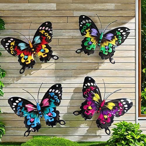 Générique Metal Butterfly Wall Decor, Yard Sculpture Set of 4, 6.69inch Butterfly Art Aesthetics Cute for Mom Garden Fence Outdoor Spaces, Artistic Natural Accent, Handy to Install