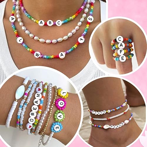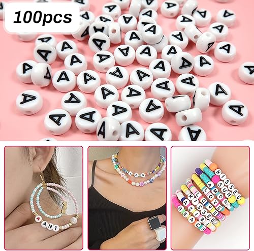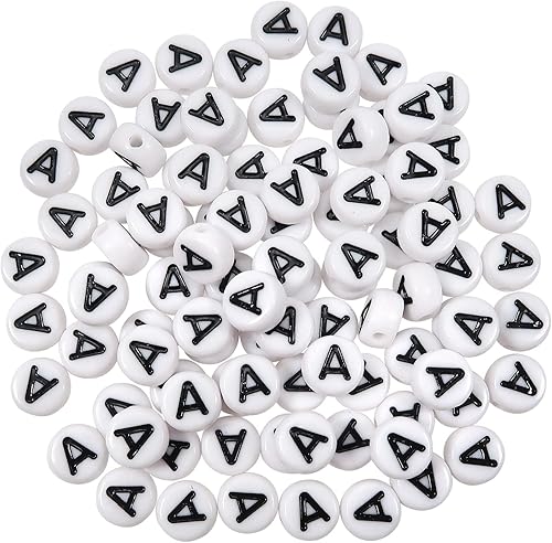 TOAOB 100pcs Voyelle Lettre Perles 4x7mm Rond Blanc Lettre Perles avec Alphabet Noirs A Ronde Acrylique Espaceur Perles pour Bricolage Fabrication de Bracelets Colliers Bijoux