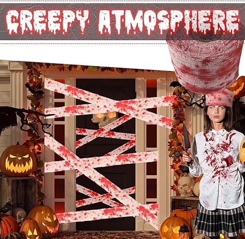 MUYAPAY Gaze Sanglante Effrayante pour Halloween, Tissu d'halloween Effrayant, Decoration Halloween Sang Réaliste, Halloween Decoration Sanglant, pour Halloween, Cosplay, Décoration de Maison Hantée