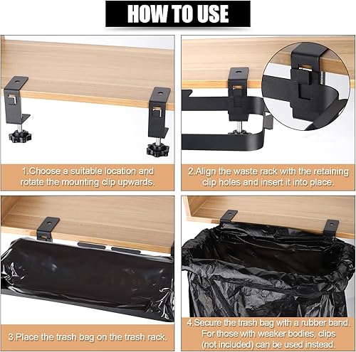 NQEUEPN 30 x 15 cm Support Sac Poubelle, Support suspension crochet sac poubelle acier inoxydable pinces Fixation Support Sac Poubelle Stable pour Armoire, Camping, Camping-Car, Salle de Bain