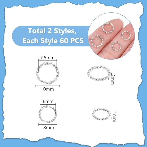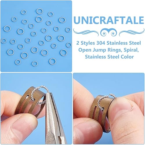UNICRAFTALE 120 pièces 2 tailles Anneaux de Saut Acier Inoxydable Anneau Torsadé 8~10mm Anneaux Ronds Ouverts pour Fabrication de Bijoux Boucles D'Oreilles Bracelets Pendentif Ras du Cou et Porte Clés
