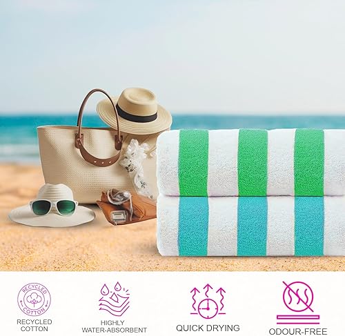 Casa Copenhagen Cabana Plage Serviettes, Rugueux et Difficile, Rapide Séchage, pour la Piscine, Bain et Douche 76,2 x 152,4 cm, Lot de 4 Coton Plage Bain Serviette - Turquoise, Bleu Roi, Rose, Vert