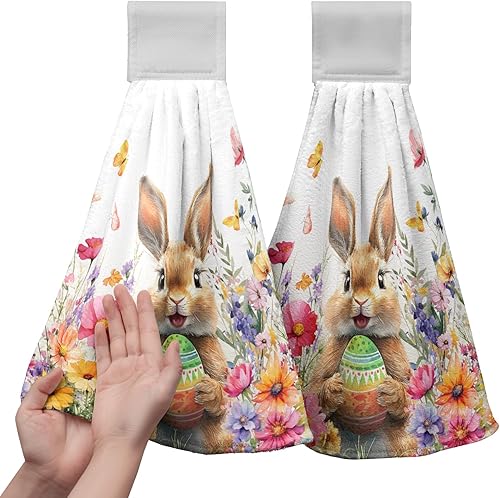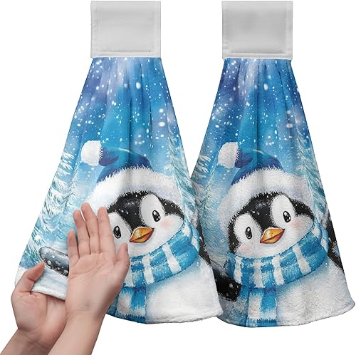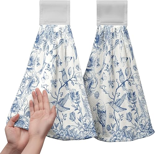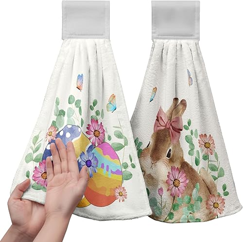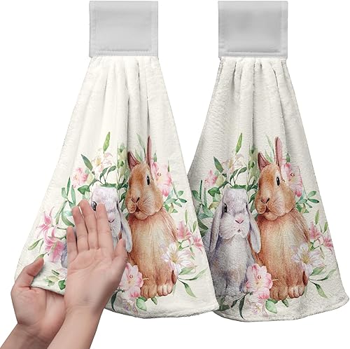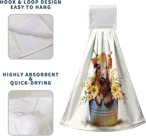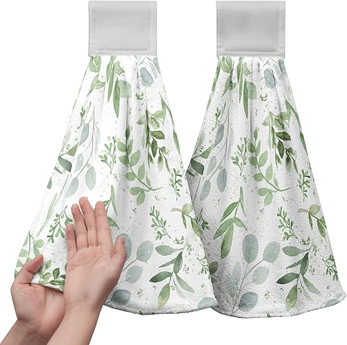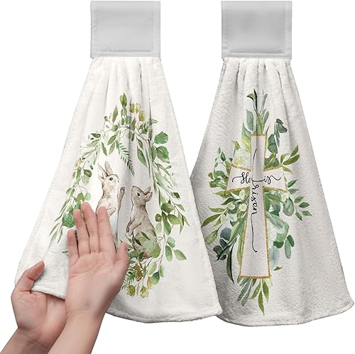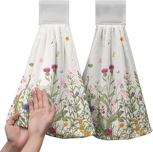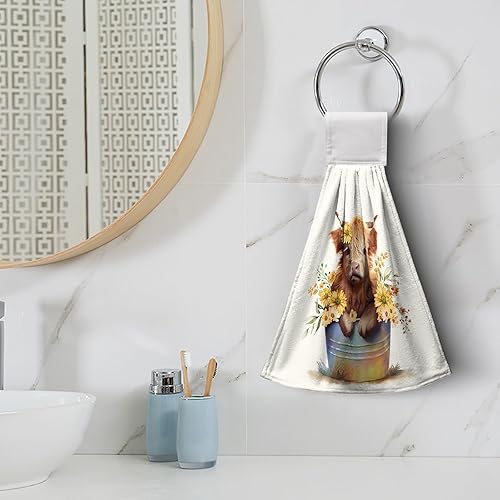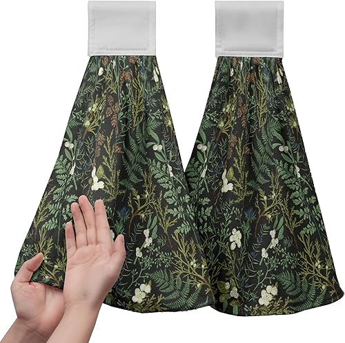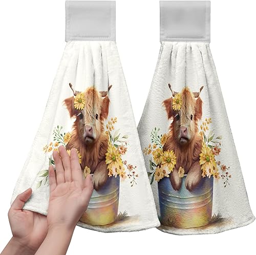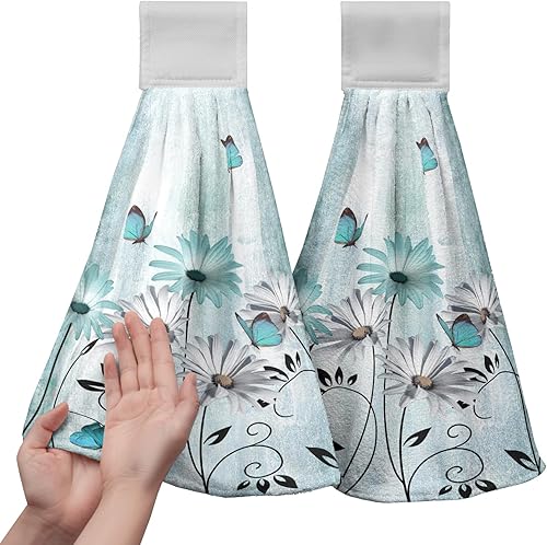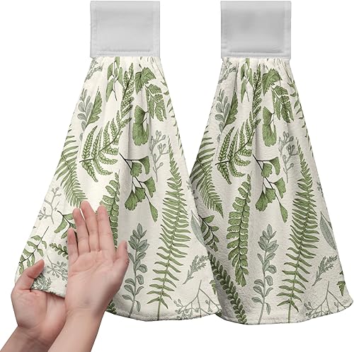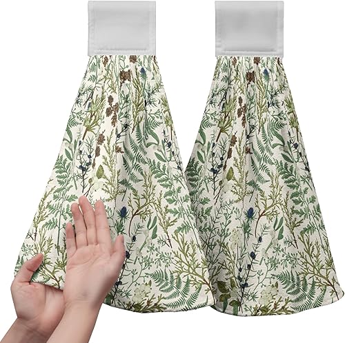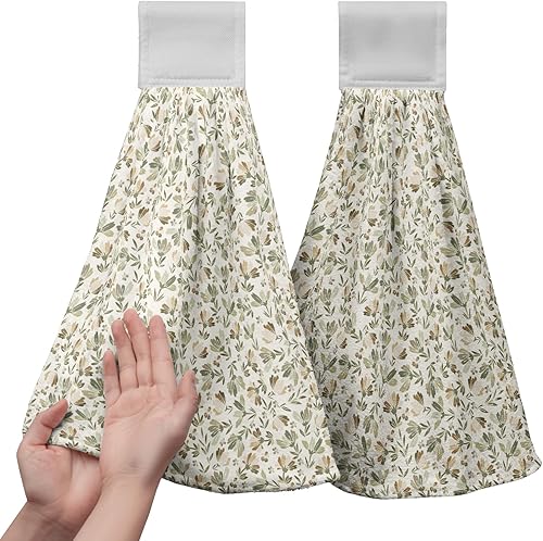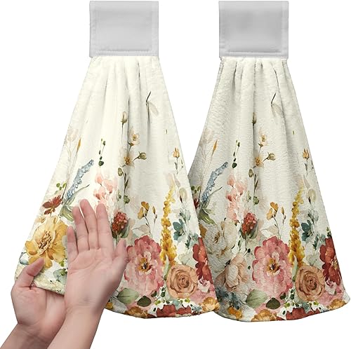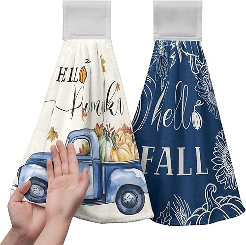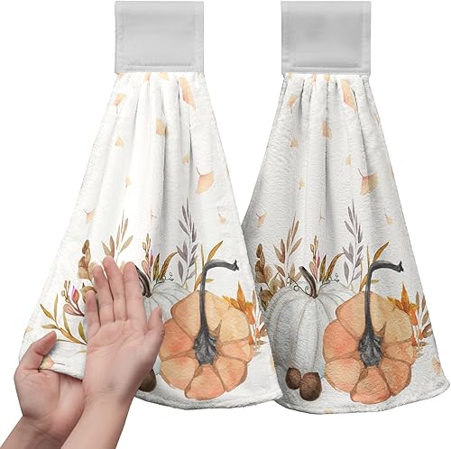 Kwlegh Lot de 2 essuie-mains vintage avec boucle de suspension pour l'automne et l'automne - Torchons de cuisine rustiques à suspendre - Doux et absorbants - Pour décoration de salle de bain