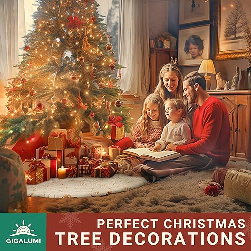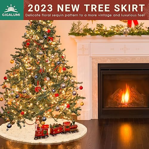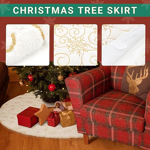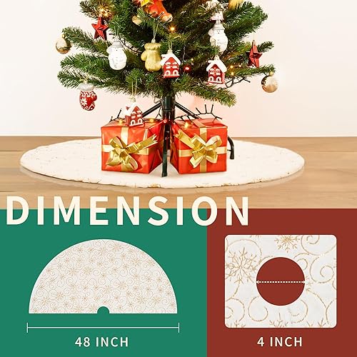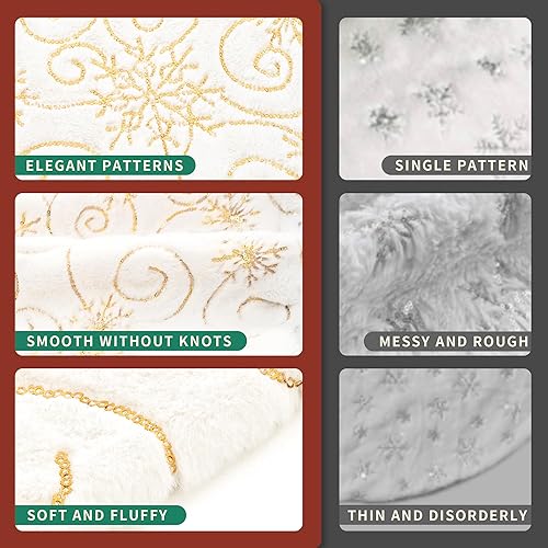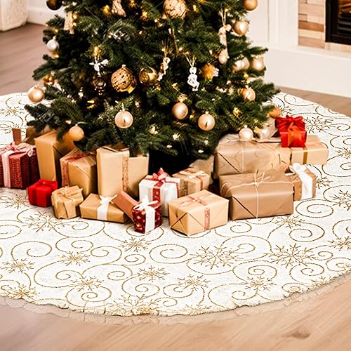 GIGALUMI Jupe d'Arbre de Noël 120 cm, Tapis Blanc et Doré en Fausse Fourrure Blanche Neige pour Vacances, Maison, Fête, Décorations (Blanc/Or)