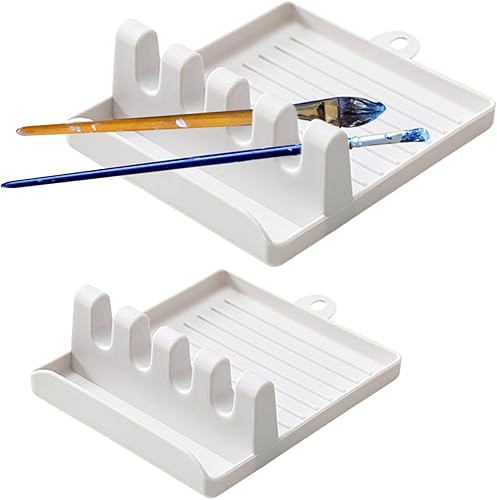 Gcroet Porte-Pinceau, Porte-Pinceau en Plastique de Peinture de Pinceau avec 4 Fentes Chinois Calligraphie Holder Brush Drying Rack Rack Organizer Display Stand 2 PCS